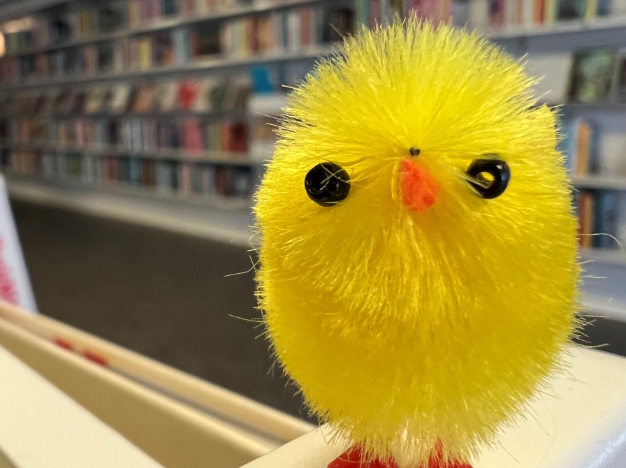 Påsken 2025Hvor mange kyllinger har mon gemt sig på hylderne i børnebiblioteket?